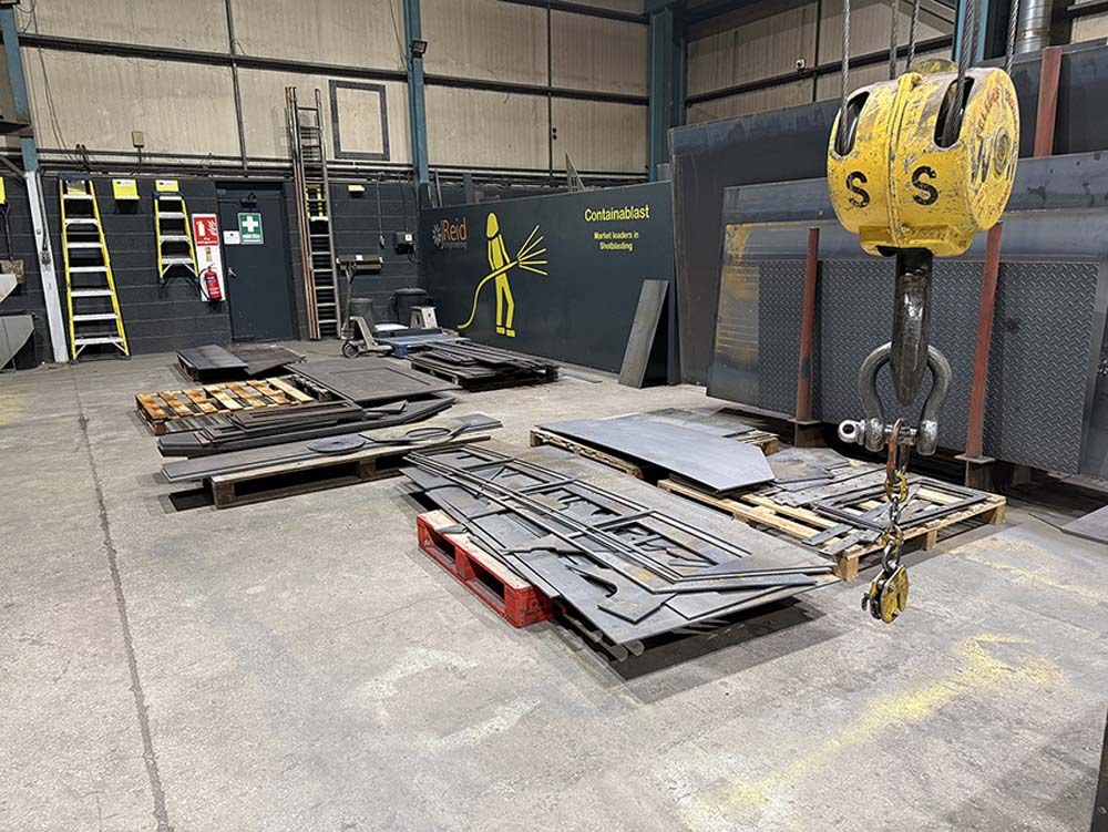 We have started work on a large automatic shot blast machine at our North Wales facility. The machine will use 8 x 11kW wheel units to process components as they pass through the cabinet. Parts will be suspended from an overhead conveyor during blasting.